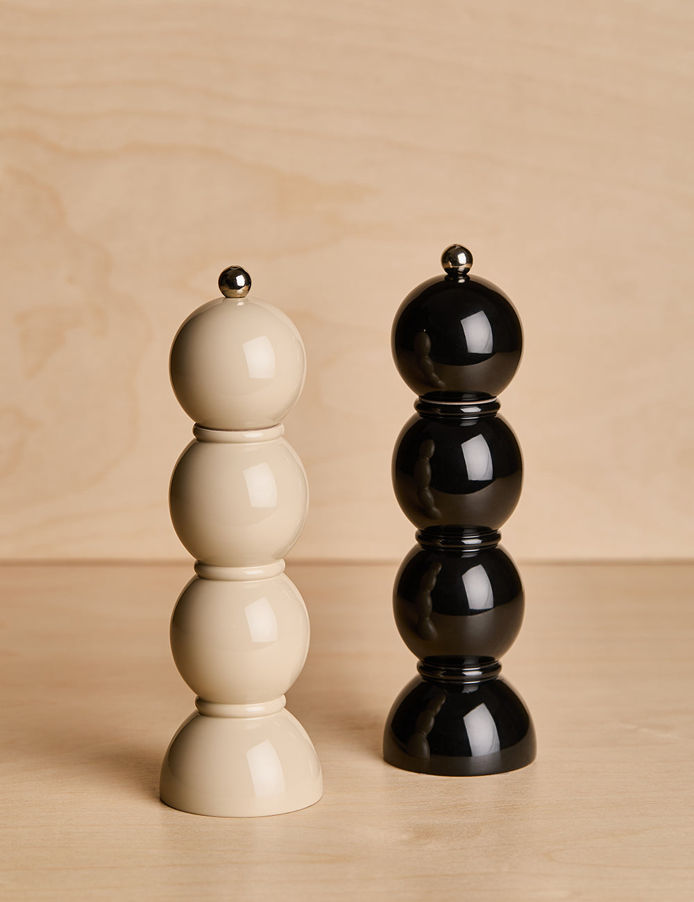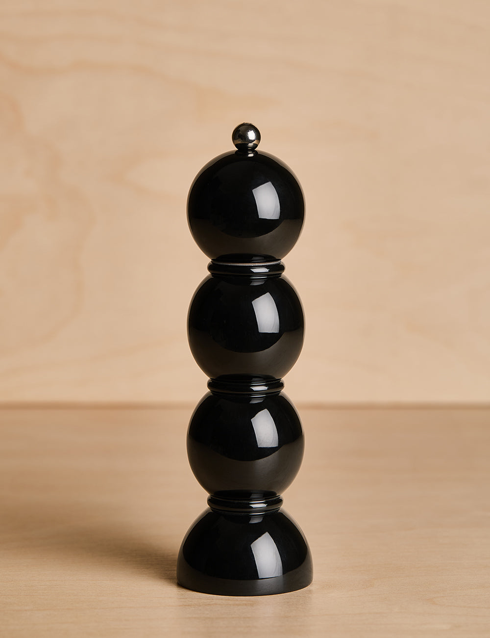 This black lacquered bobbin shaped mill comes with both an S and a P stainless steel screw knob so you can decide for yourself whether you want this to be a Salt Grinder or a Pepper Grinder.