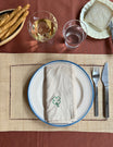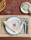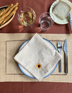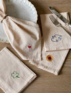 These gorgeous cotton napkins come in a set of four, with charm embroideries in four different colours. A shell, a sunflower, a four-leaf clover, and a swallow. Made in 100 % organic cotton.