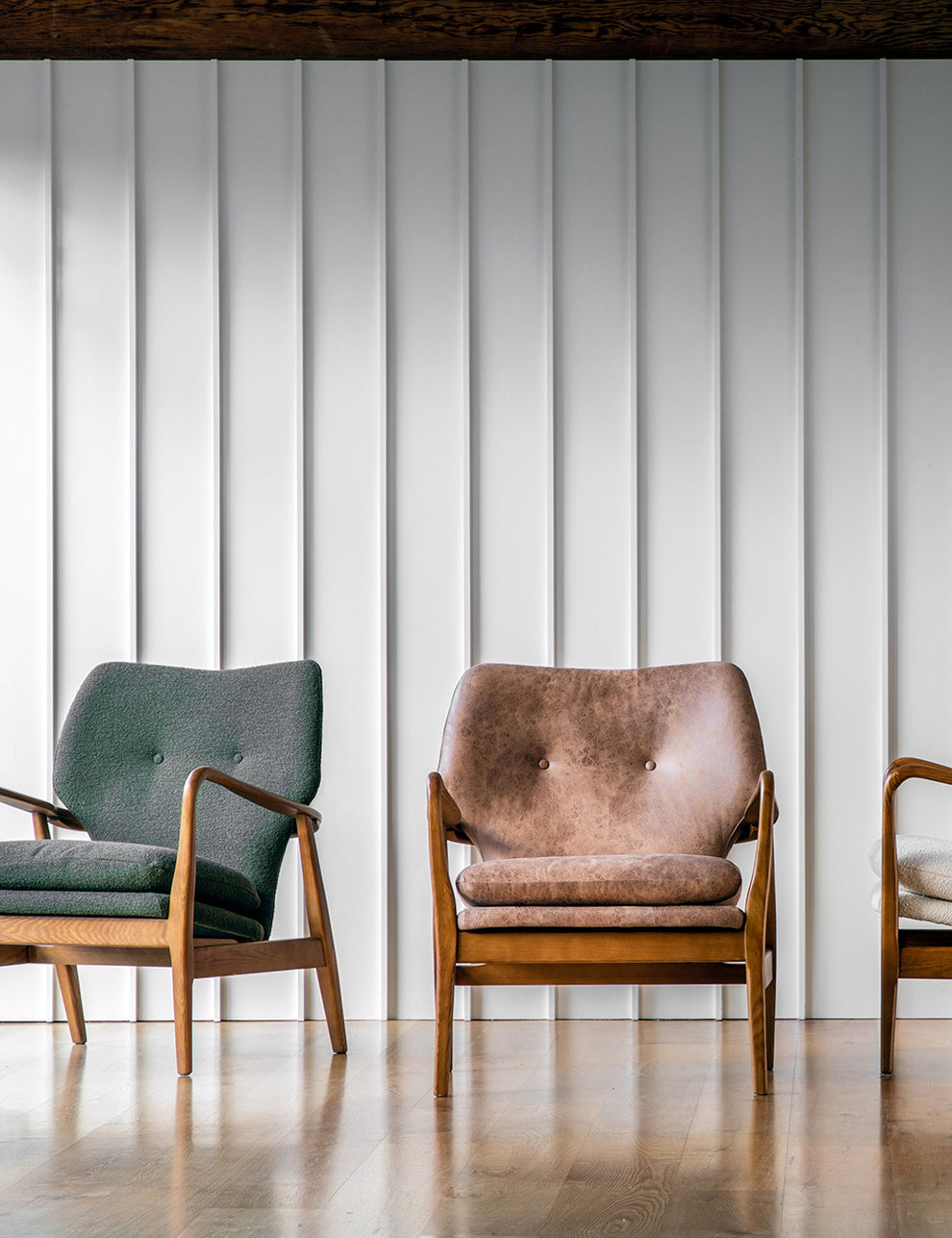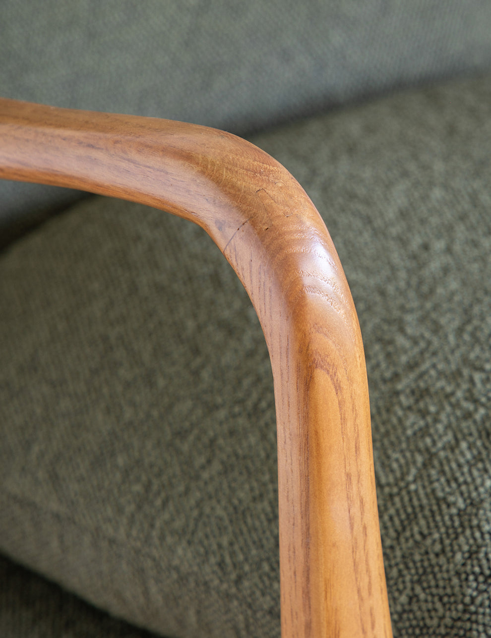 Inspired by Mid-Century design, this striking chair pairs timeless style with beautifully considered craftsmanship. Its elegantly shaped solid oak frame forms a sculptural silhouette, making it a standout piece in any interior. Upholstered in tactile green boucle-style fabric with subtle button detailing, the soft cushioned seat offers an inviting balance of comfort and character.