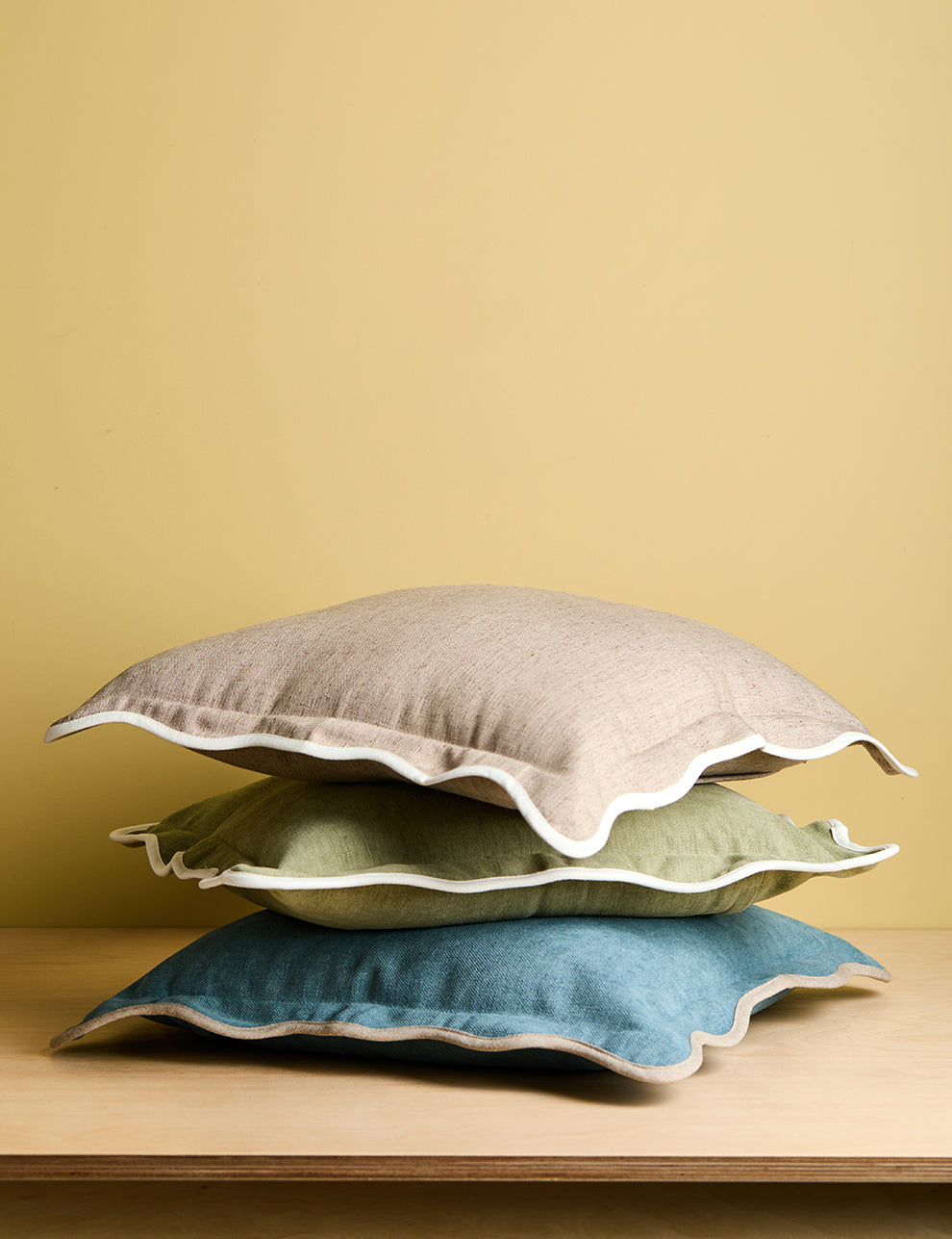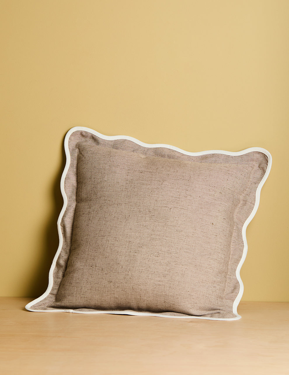 Scalloped edges aren't going anywhere and these slightly more grown up scallop cushions are just the ticket for an update to your sofa. Measures 45cm in a linen blend, zip entry and complete with a feather inner. Combine with patterns and contrasting plains for a layered, eclectic look.