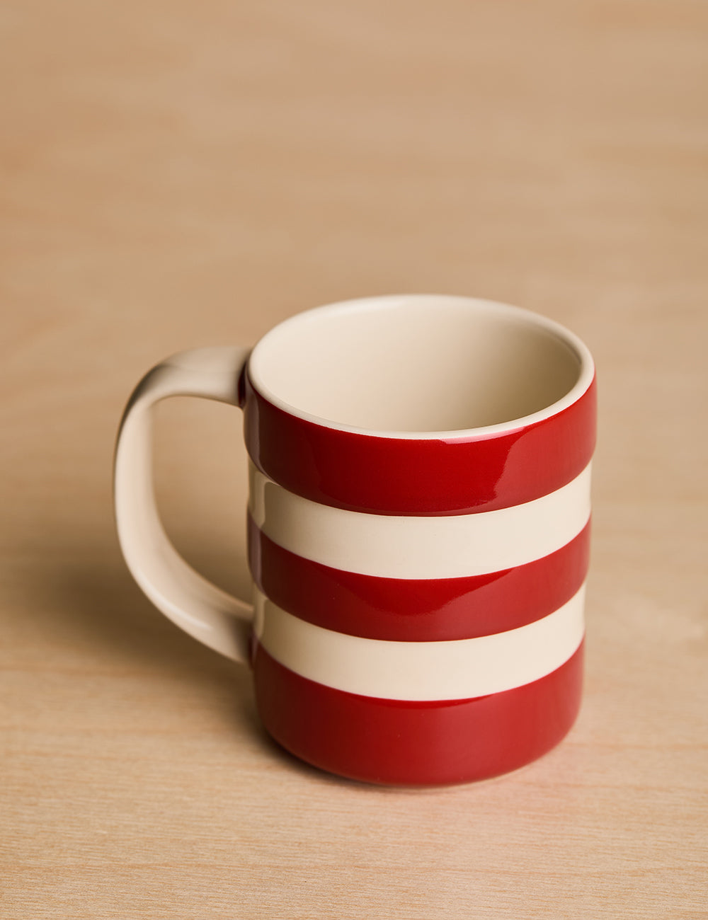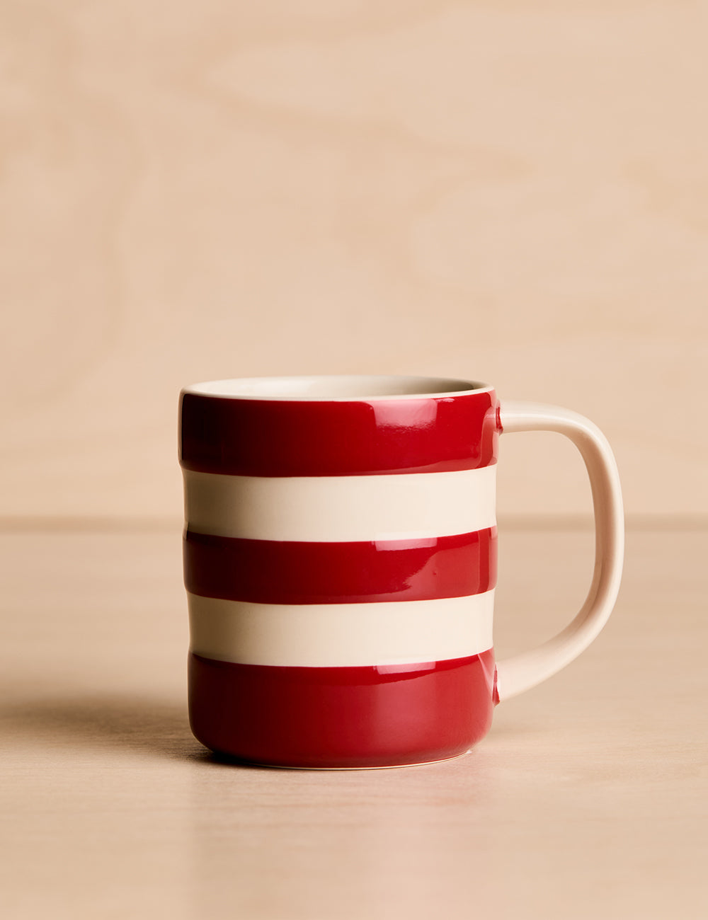 Made by Cornishware, this splendid straight-sided, three-hooped mug is just the thing for when it’s time for tea.