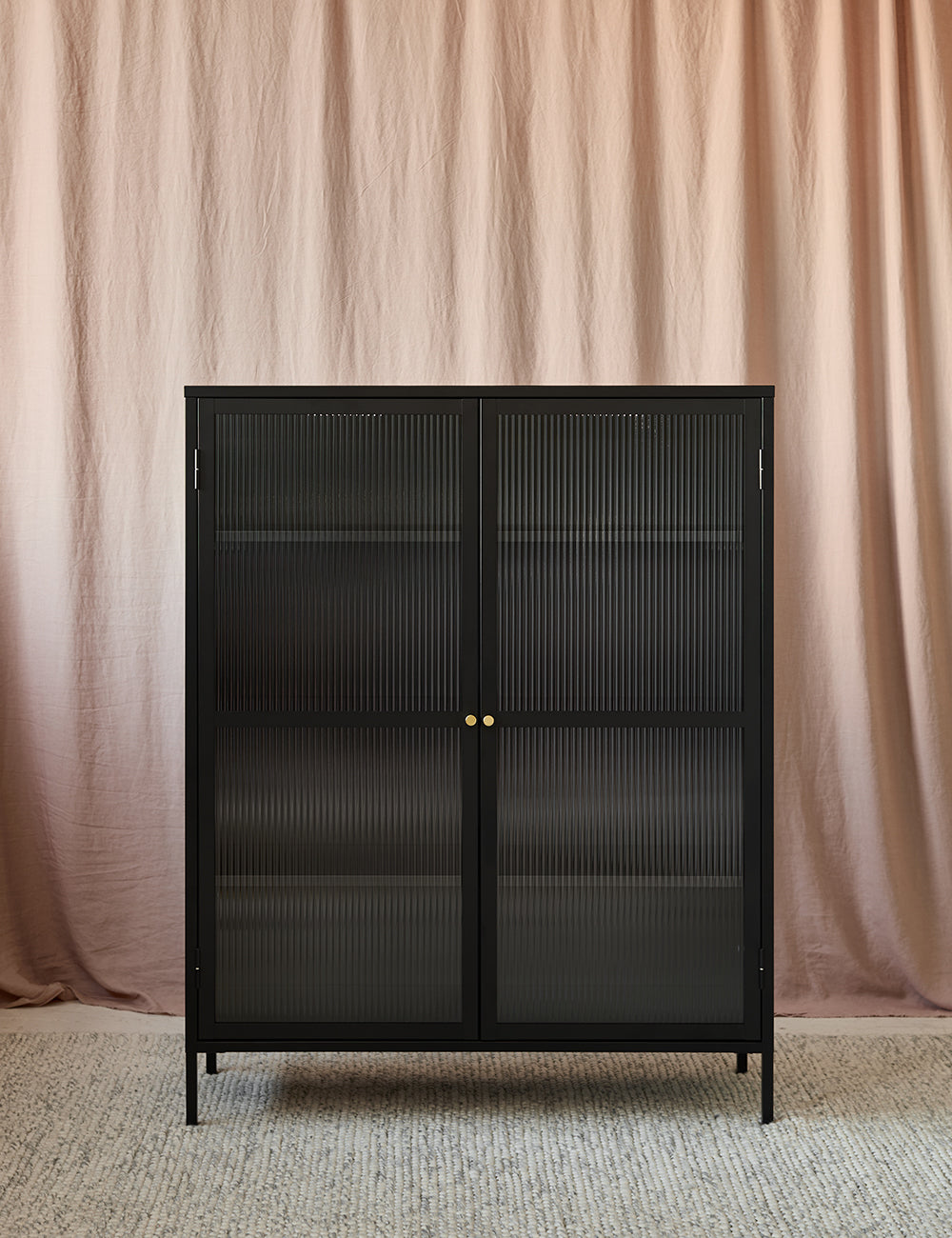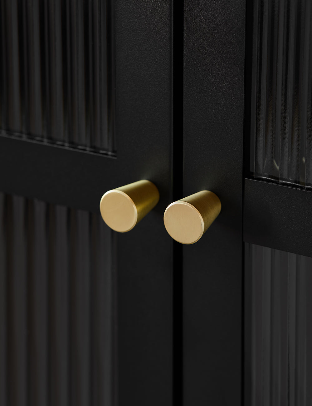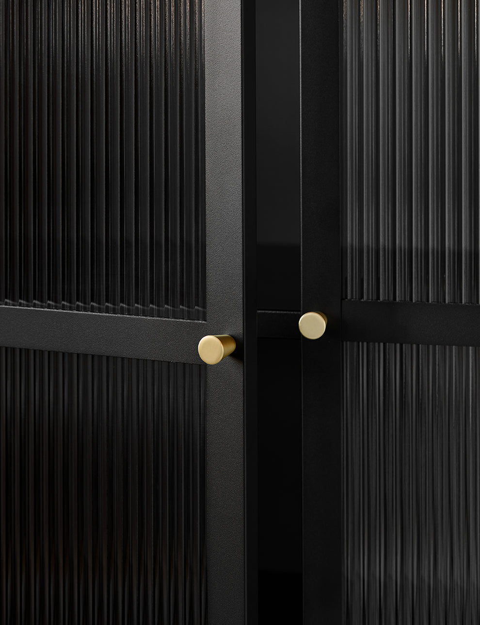 With reeded glass doors, a slim metal profile and minimalist brass handles, this cabinet embodies everything a modern classic piece needs. In an on-trend (but never out of fashion) painted finish, it's 4 shelves (including the cabinet base) will happily hold anything from your favourite crockery and books to toiletries or even clothes. This is a self build piece - all the easier to get into the house!