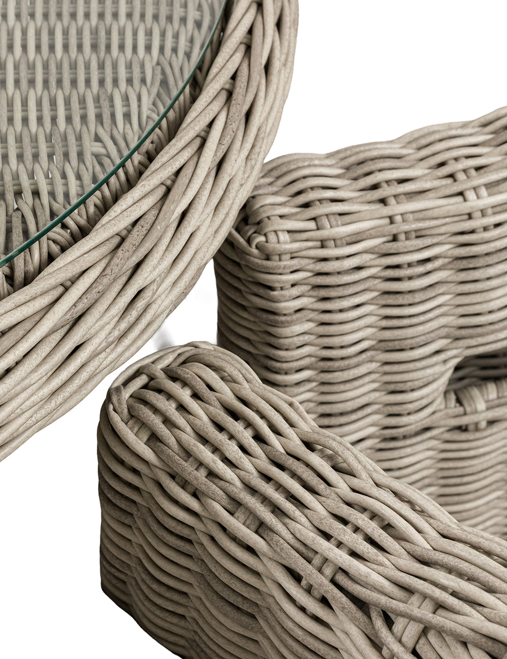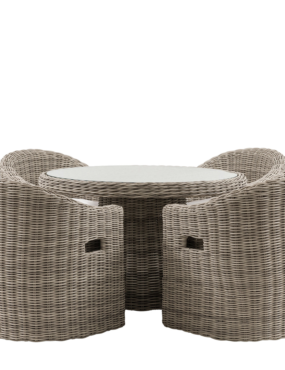 The chunky design is enhanced by a premium full rounded poly rattan weave, giving the set a timeless yet contemporary feel. At the centre, the elegant dining table features a practical glass top - ideal for everyday use and easy cleaning. Crafted with durable aluminium frames and finished with shower-resistant cushions, this set is designed for effortless outdoor living throughout the season.