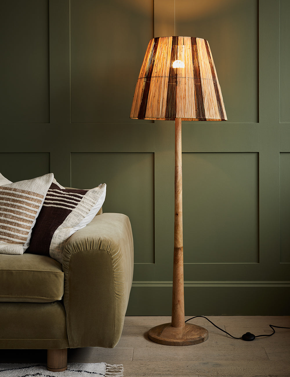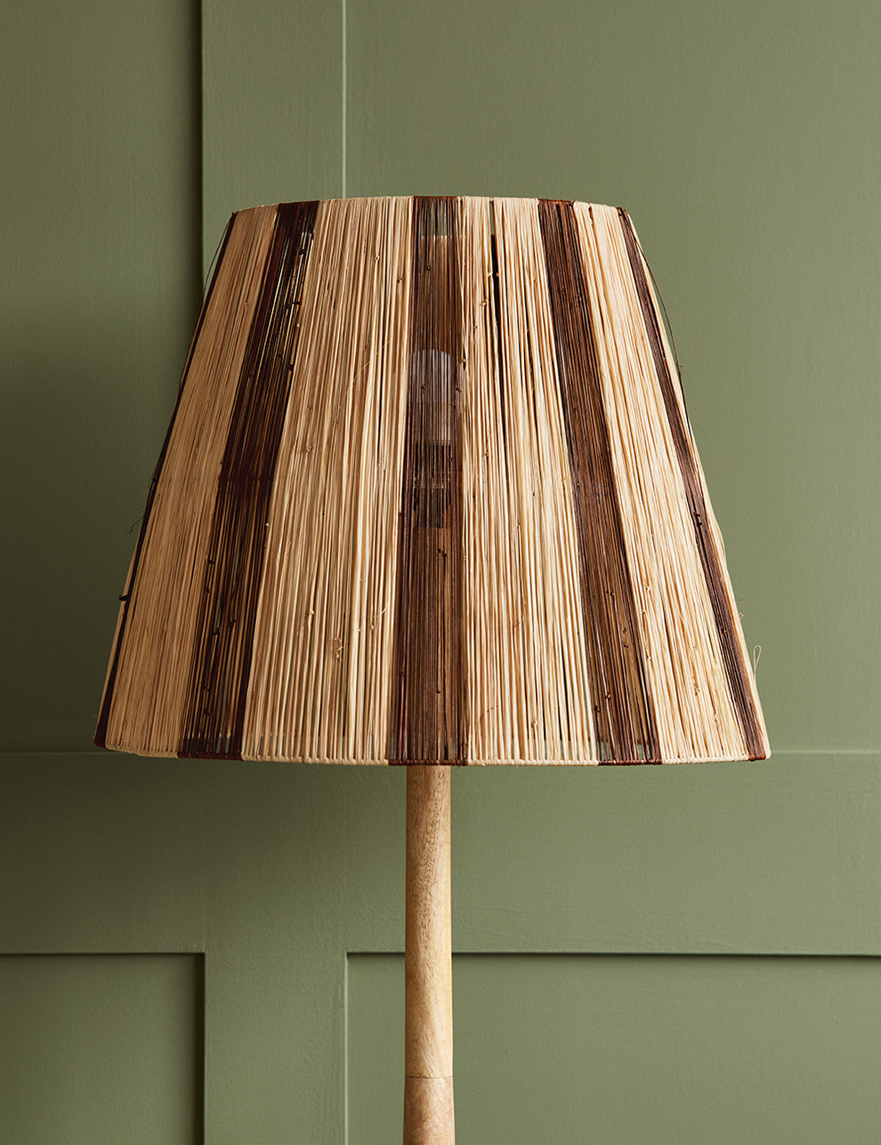 Add natural textures to your space with the Stripe Raffia Lampshade. Featuring a chocolate brown chunky stripe detail that beautifully contrasts against the natural raffia tones, this lampshade is perfect for diffusing light whilst adding a touch of style to your home. Think rustic but with a contemporary twist.