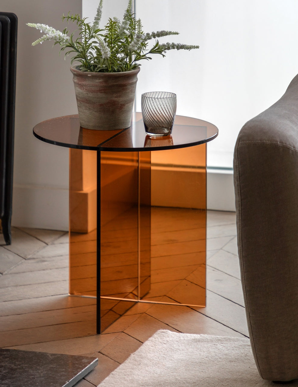 Bring the essence of 70s cool into modern homes with this effortlessly stylish side table. Blending retro influence with clean, contemporary lines, it feels both nostalgic and fresh. The bronze-toned toughened glass top is practical enough for everyday living, while the minimalist silhouette adds a refined edge, making it the perfect finishing touch for sophisticated interiors.